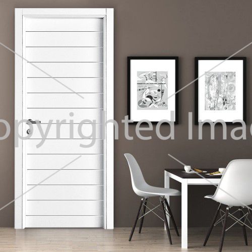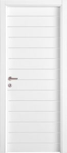 Дверний блок у МДФ, фарбування у стандартні 8 кольорів. Структура полотна гладкий МДФ пофарбовані. Виконаний на зритій петлі Kombi 3, полотно та лиштва компланарні. Короб на товщину стіни 100 – 110 мм. Широка лиштва 100 мм надає виробу багатшого сприйняття. На базі глухих дверей доступні моделі серії Trendy - МДФ у вигляді геометричних малюнків. Моделі серії Trendy при відхиленні від стандартного розміру 80*210 ведуть до зміни візуального сприйняття, оскільки змінюватимуться. Моделі із серії Trendy Graffiata Slim представлені на прихованому алюмінієвому коробі. Ціна вказана на мінімальну комплектацію.