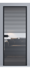 Розпашні приховані двері фабрики Astori виготовлені із алюмінієвого профілю та скла.