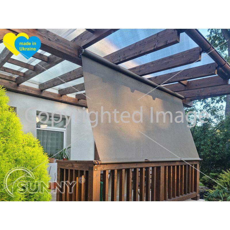 Відкрита система без напрямних з натягом тканини за допомогою пружинно-інерційного механізму і фіксацією за допомогою кронштейнів.